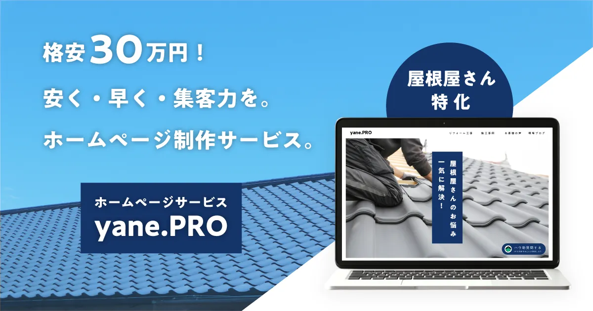 屋根工事業者様が、格安で簡単に集客用ホームページを制作できます。